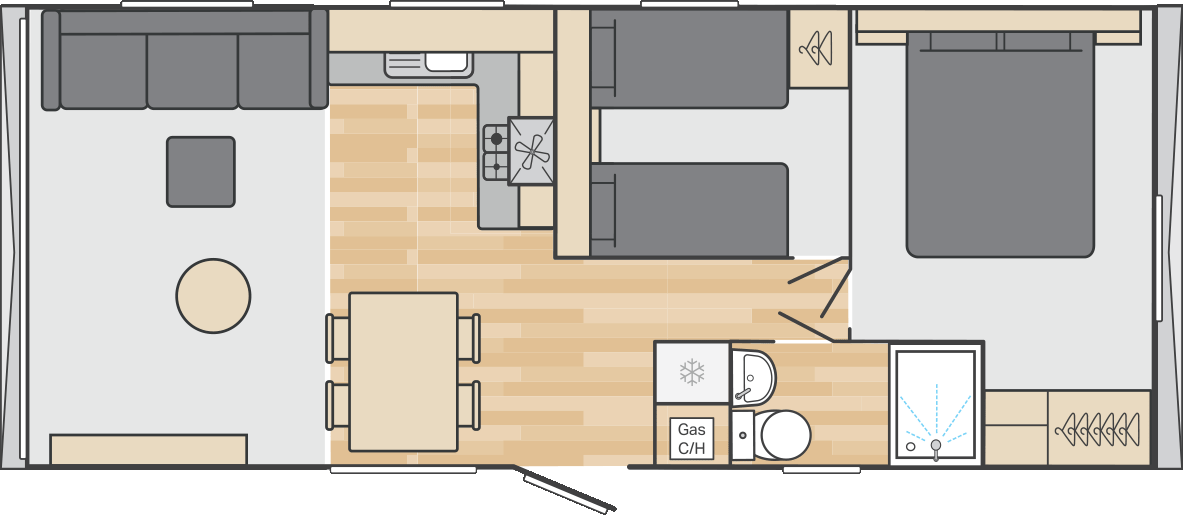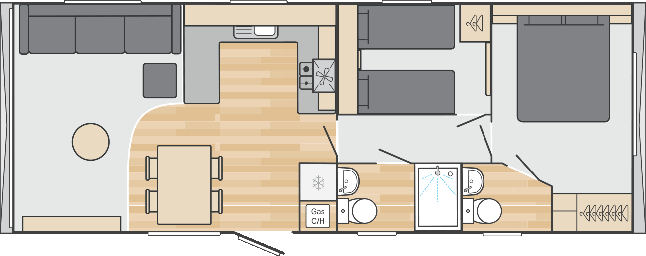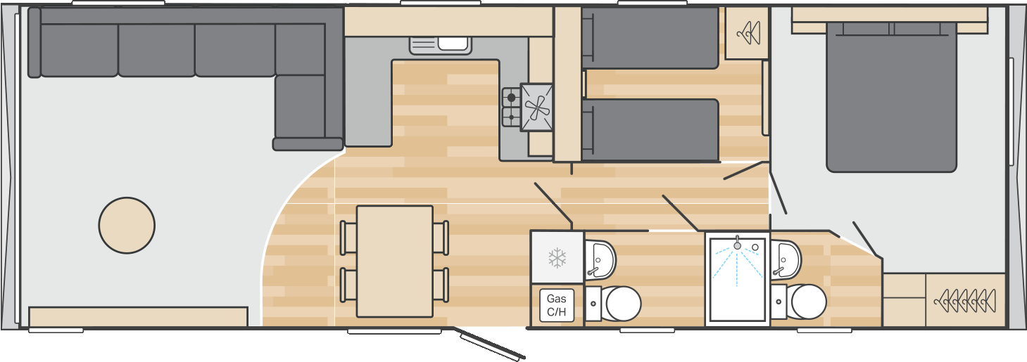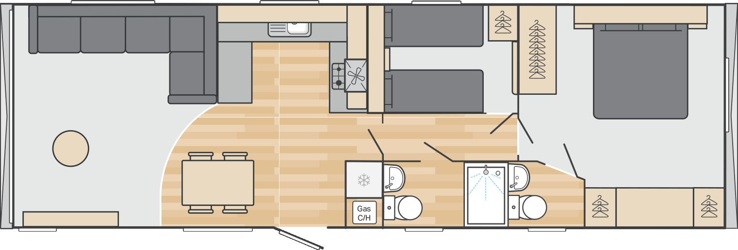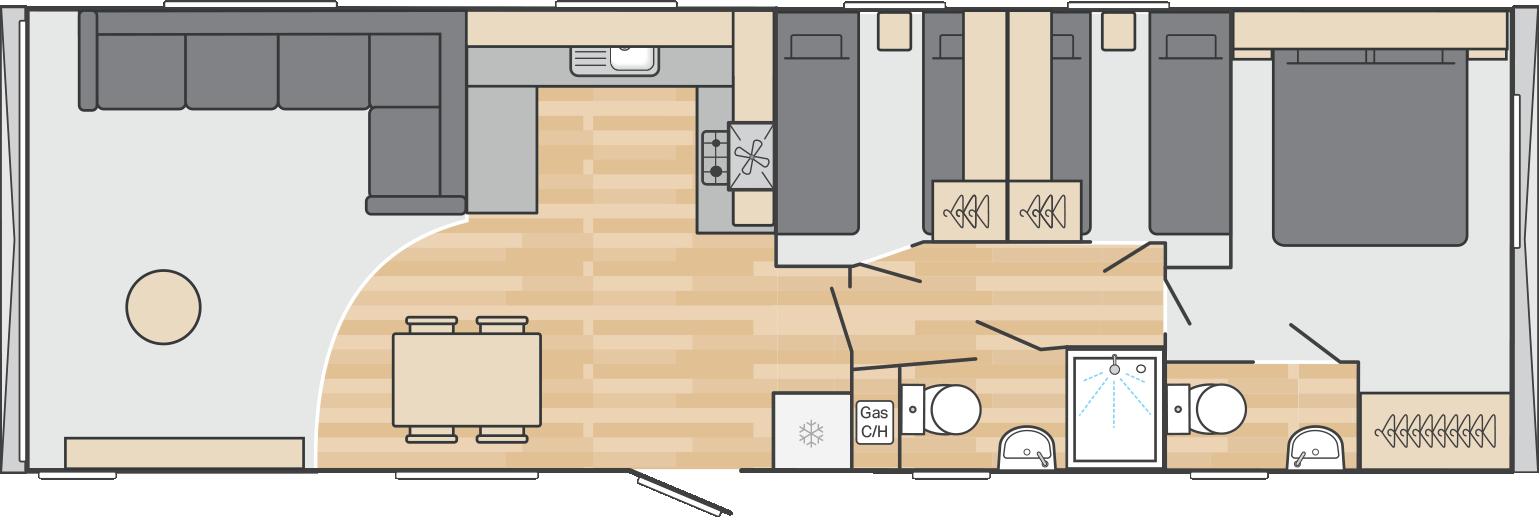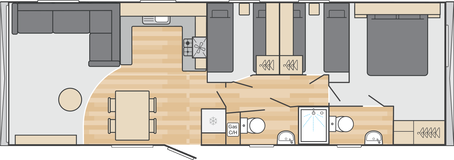 New for 2026, the Burgundy combines a fresh soft interior palette with contemporary touches – think fresh mint green, Terrazzo style details and hints of gold. Spacious and smartly laid out, its a great choice for families who want a stylish holiday home but enjoy their home from home comforts.
