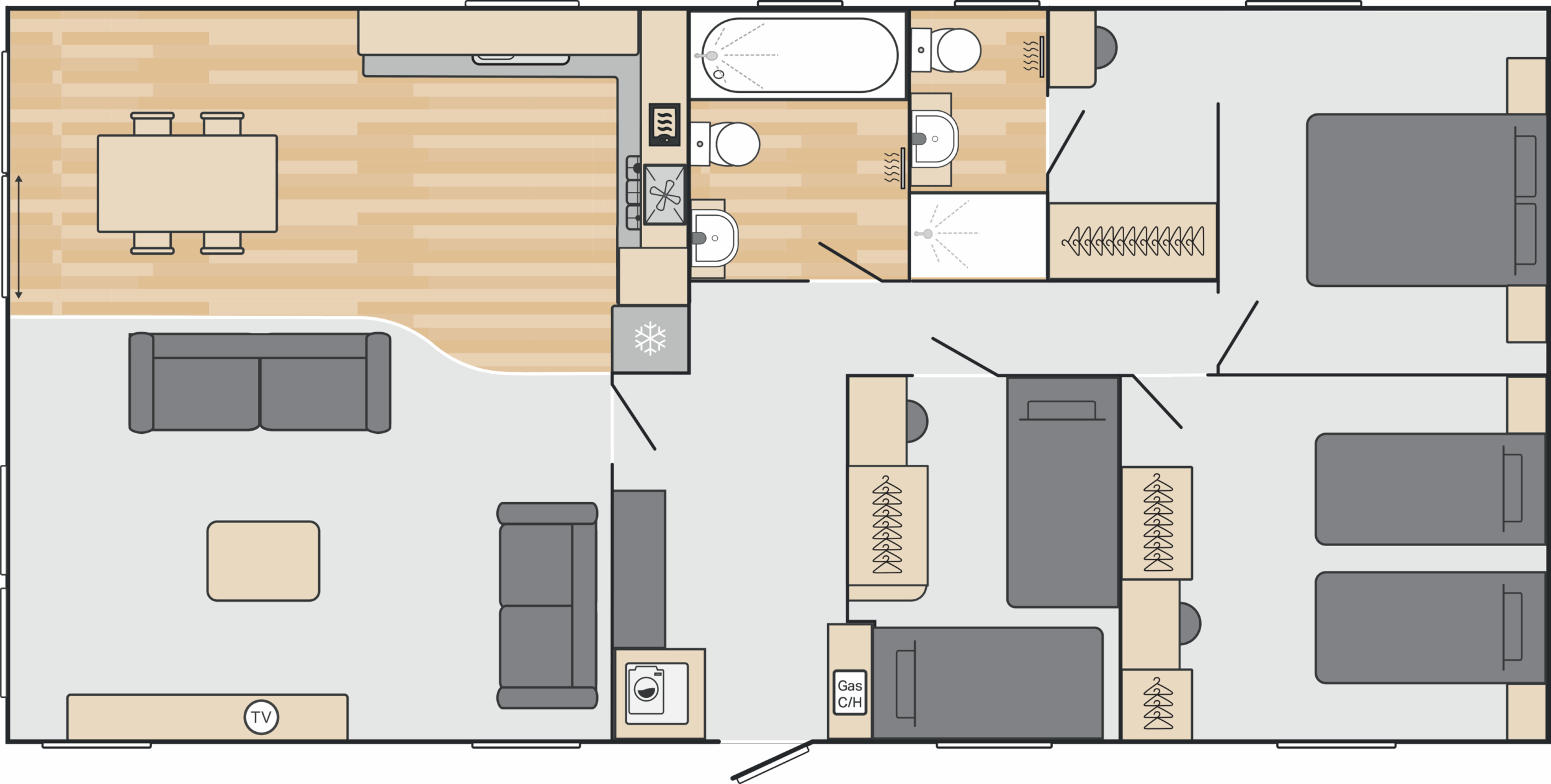 Step inside the Montreal, a twin unit lodge, boasting a stunning farmhouse aesthetic. Designed for families in mind, the Montreal presents a spacious interior and features a practical hallway, ideal for managing muddy boots and pets. With its neutral, on trend design, the Montreal provides the perfect canvas for you to incorporate your own personal style.